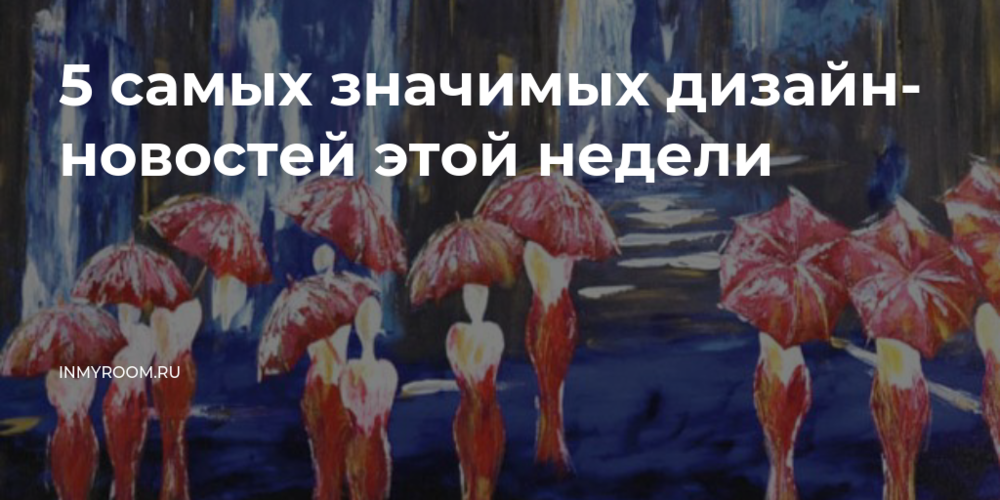 Интересные события в мире дизайна и архитектуры происходят каждый день. Вашему вниманию – cамые яркие открытия недели и анонсы грядущих событий по выбору редакции InMyRoom.
